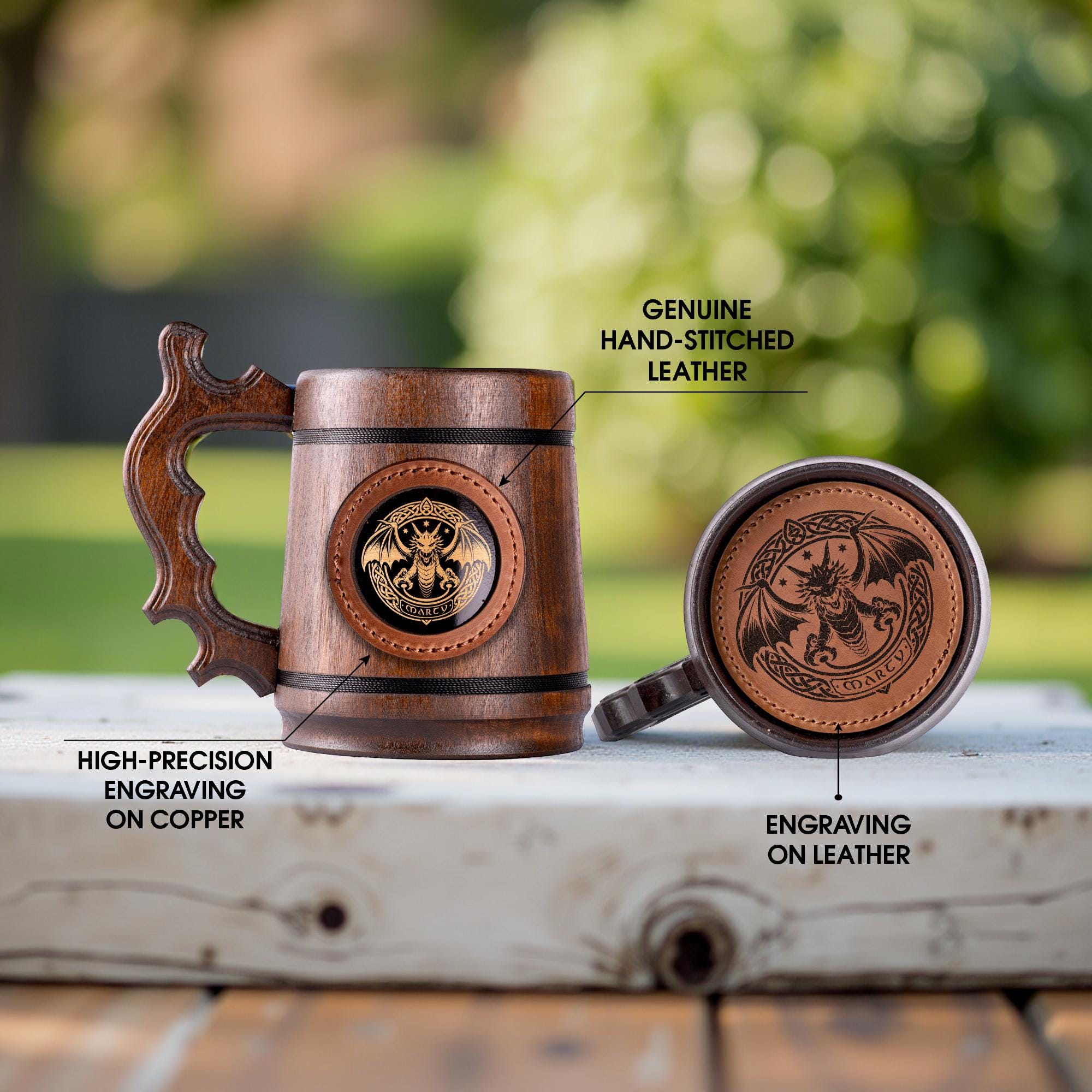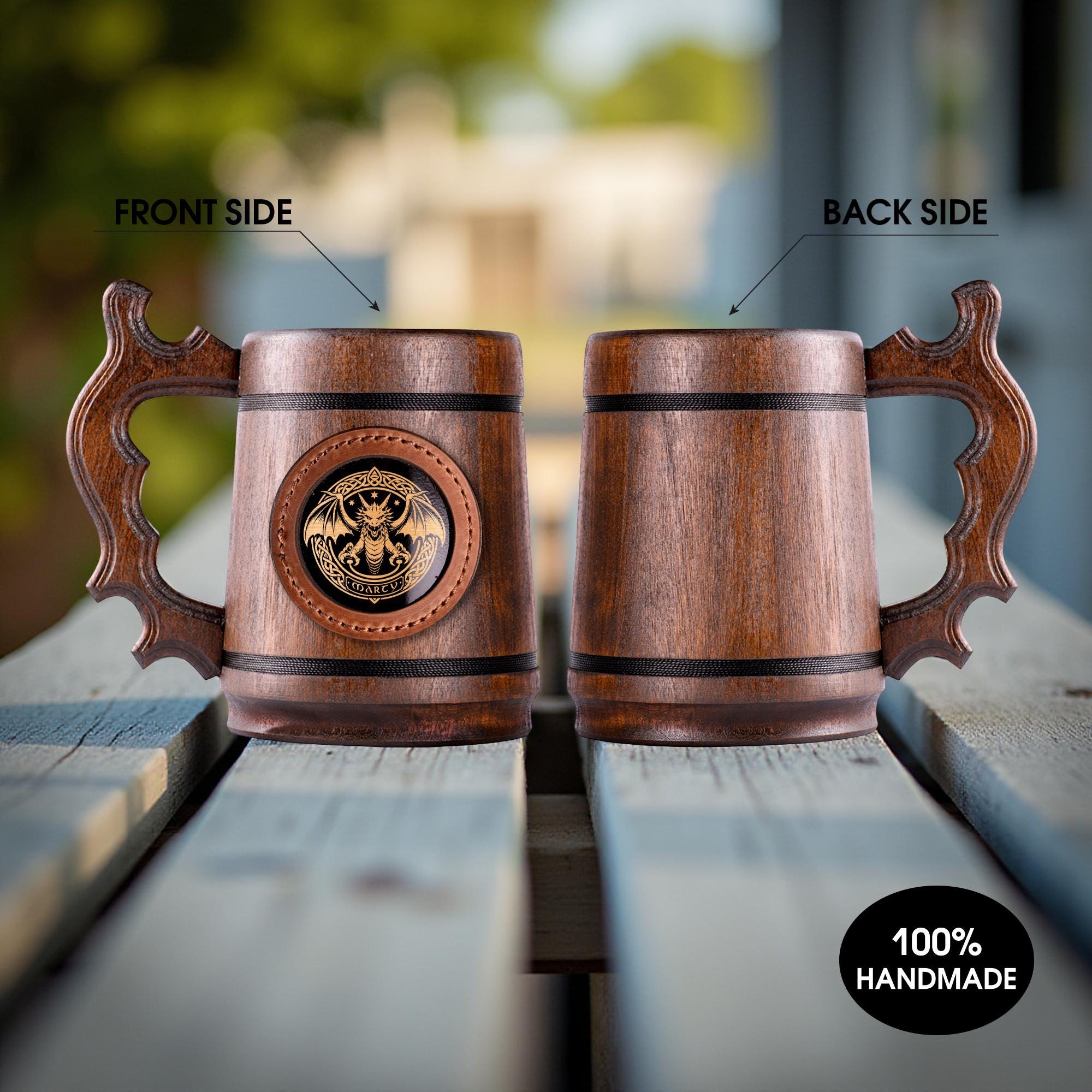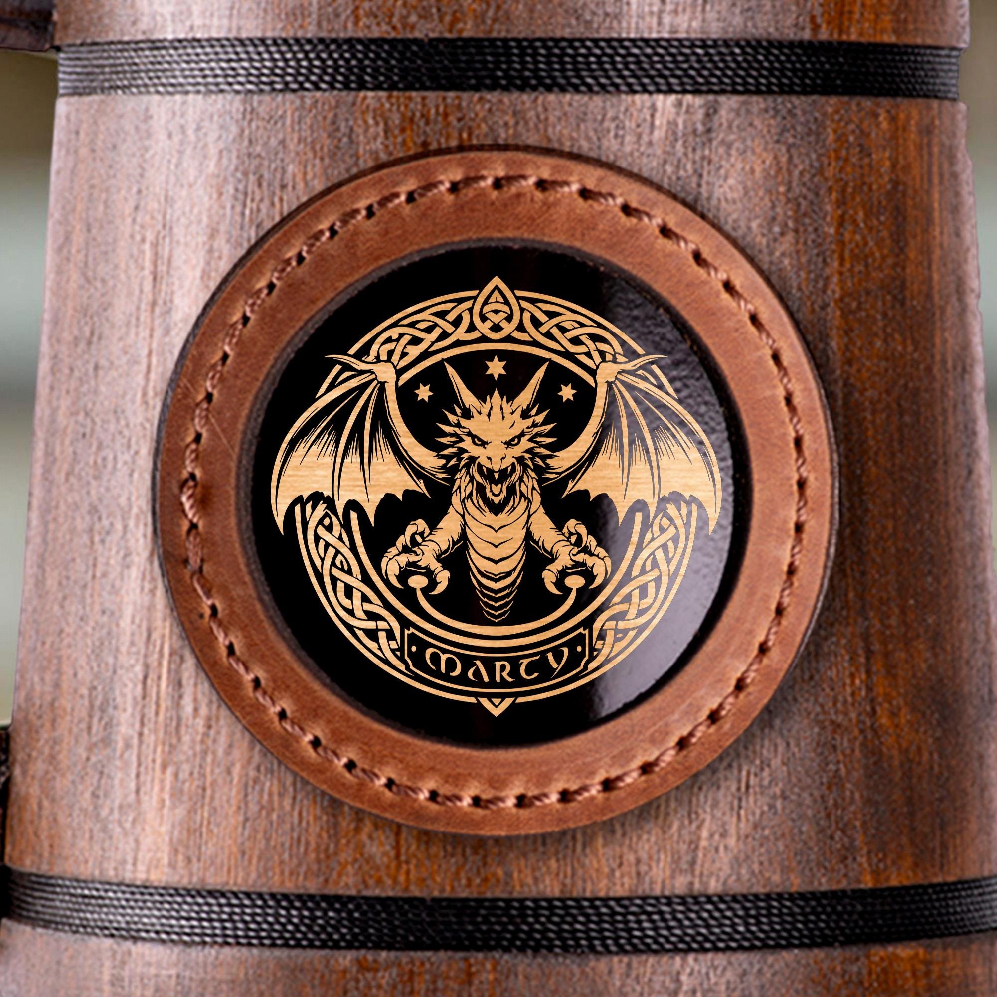 Personalized Dragon Celtic Wooden Beer Mug 22oz | Handmade Name Engraved Stein