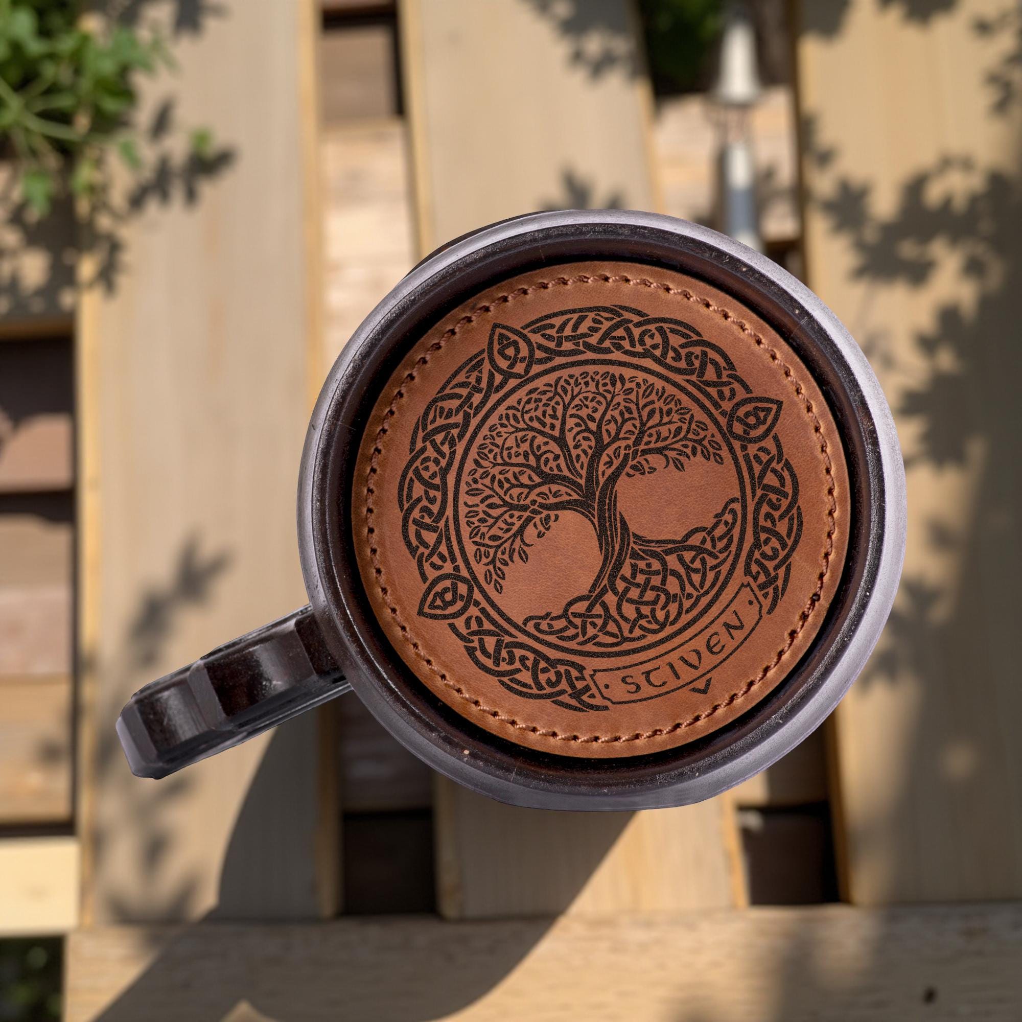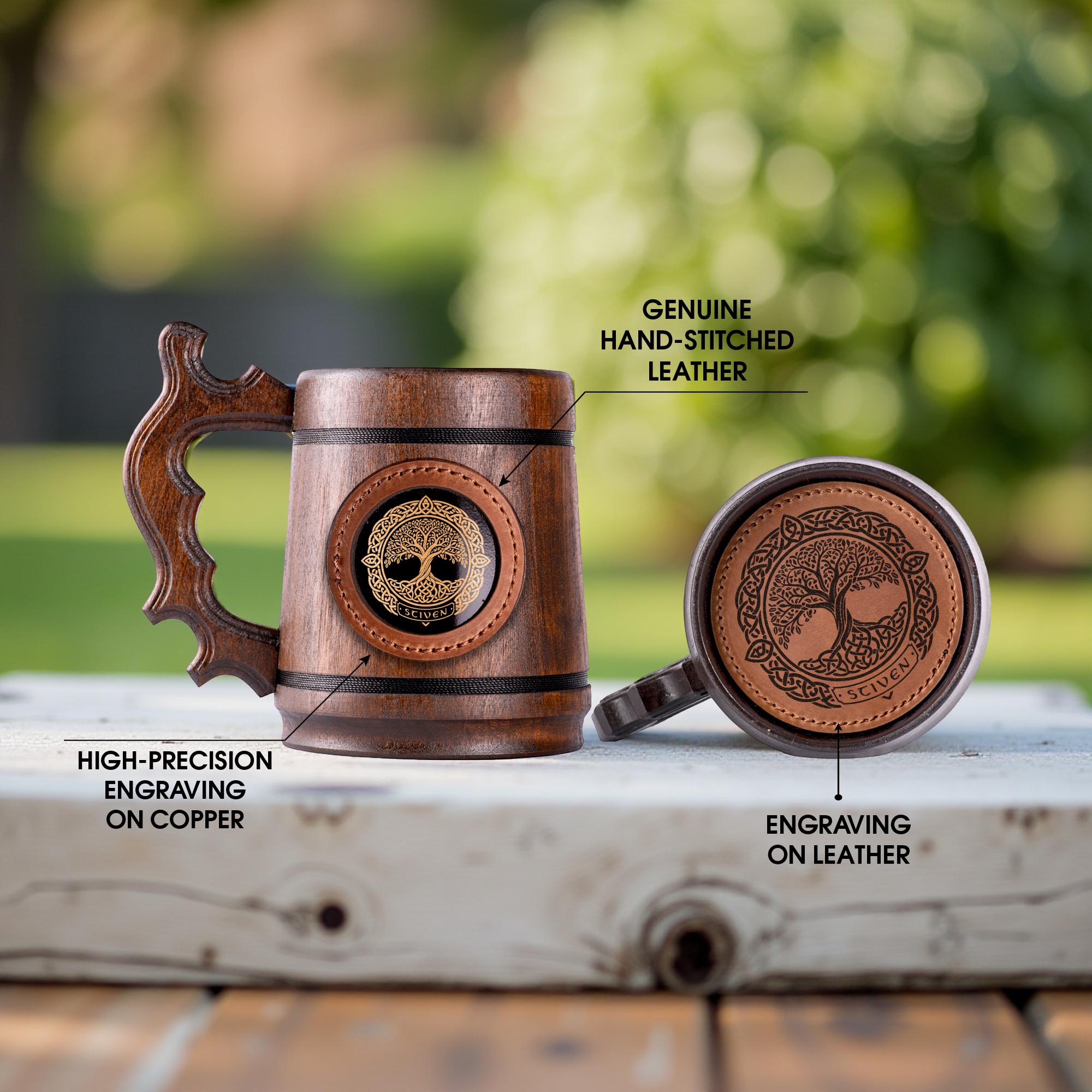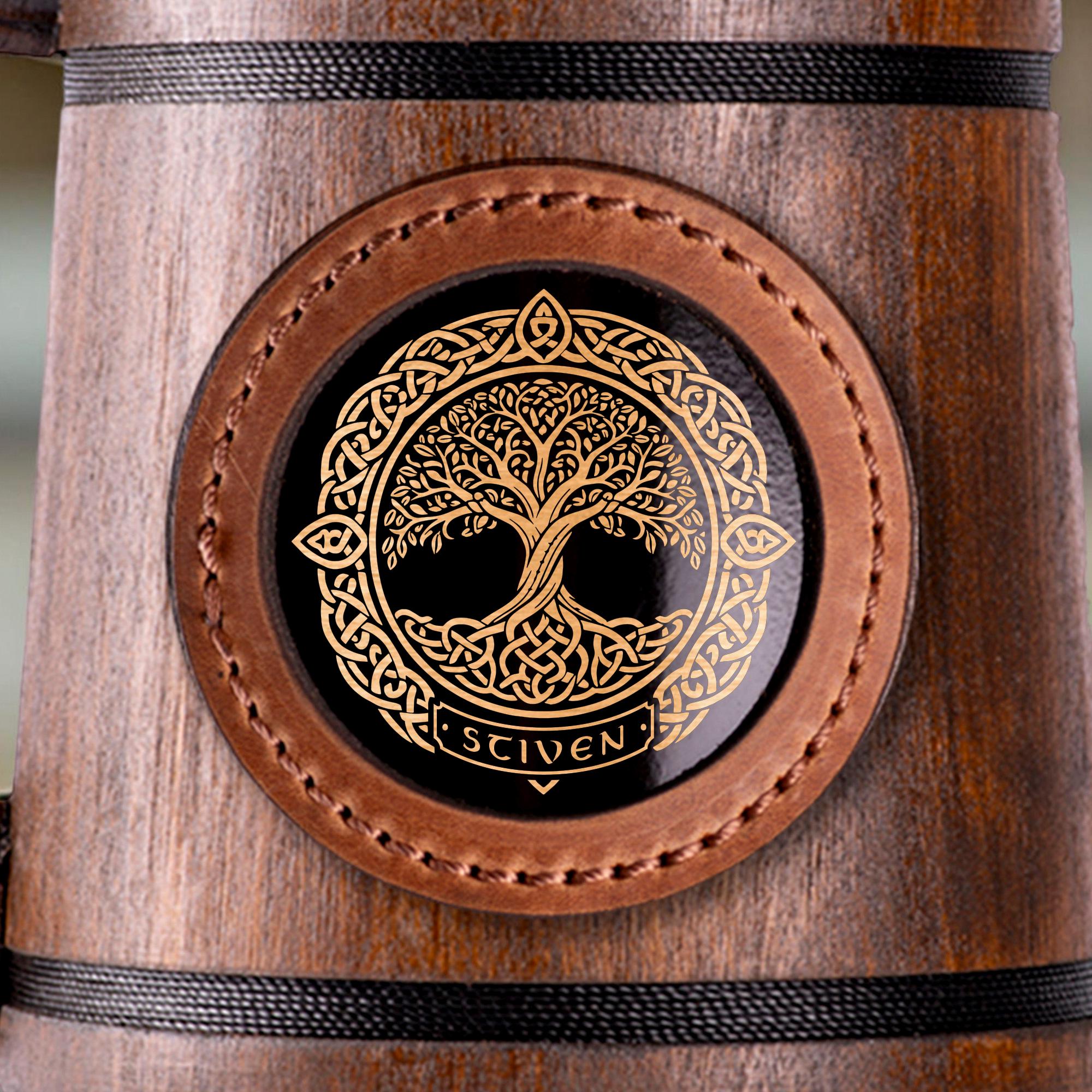 Celtic Tree of Life Wooden Beer Mug, Personalized Oak Stein 22oz, Handcrafted