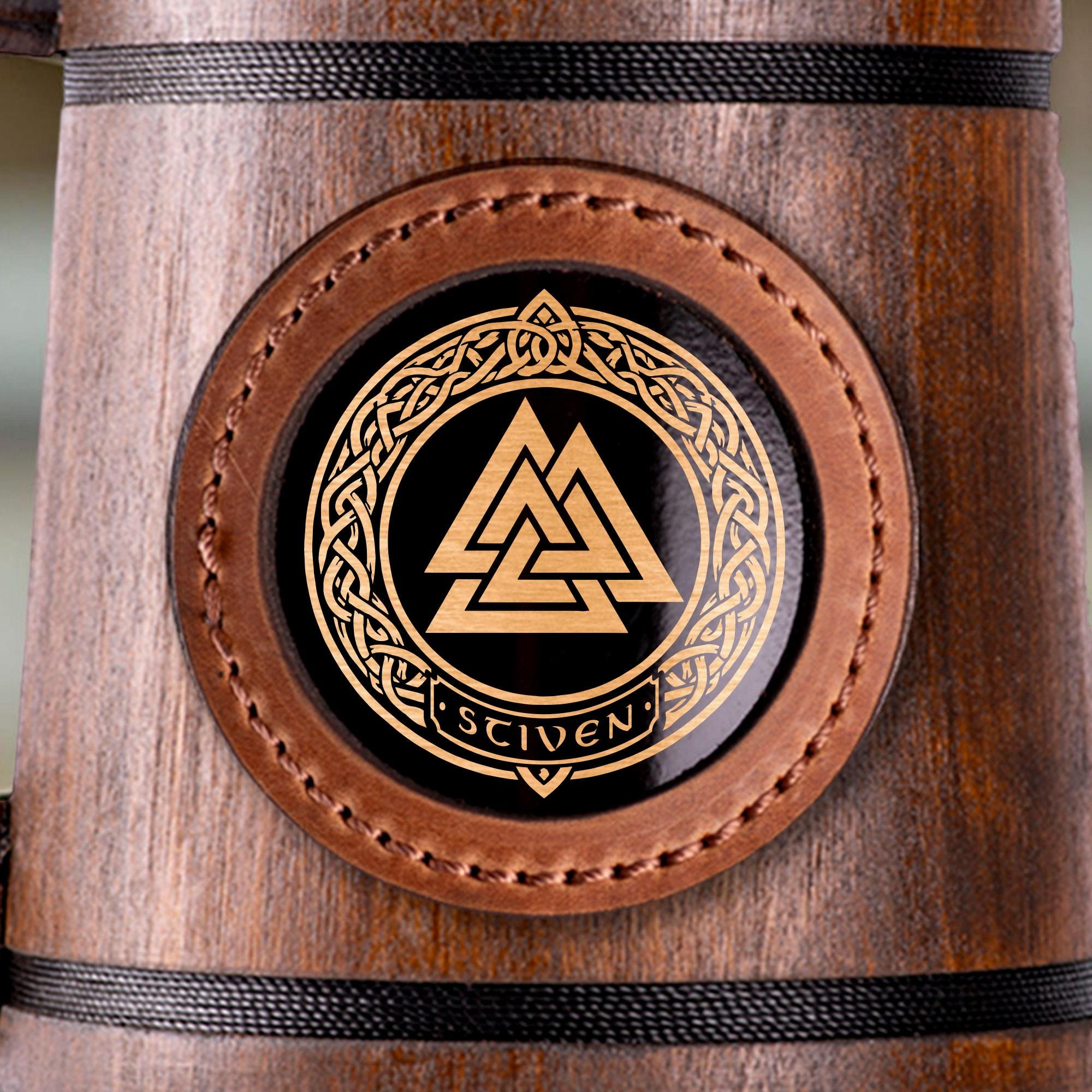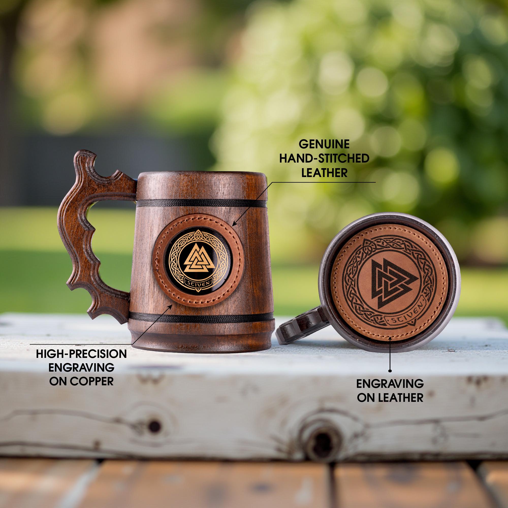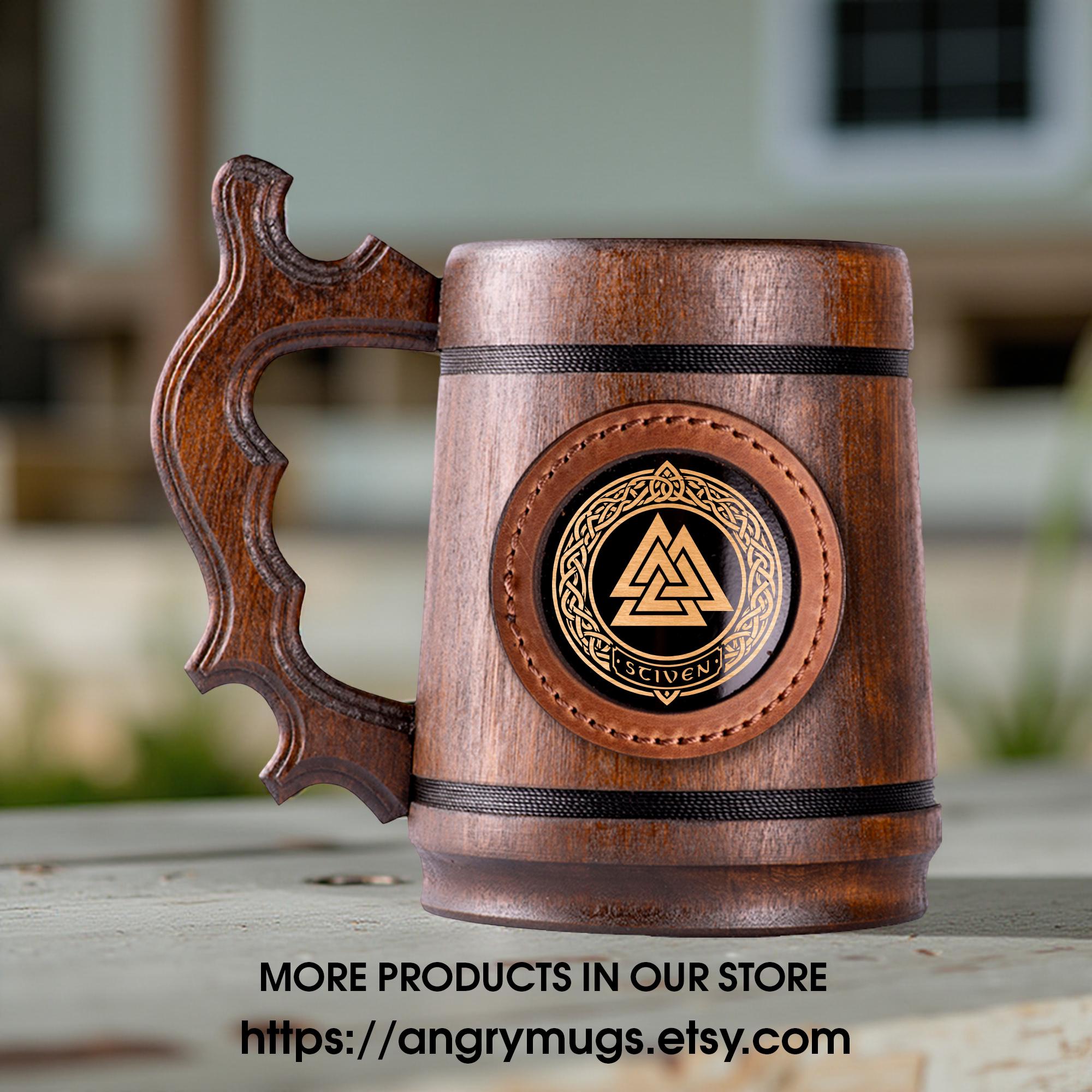 Personalized Valknut Wooden Beer Mug 22oz, Celtic Knot Engraving, Handmade Oak Stein