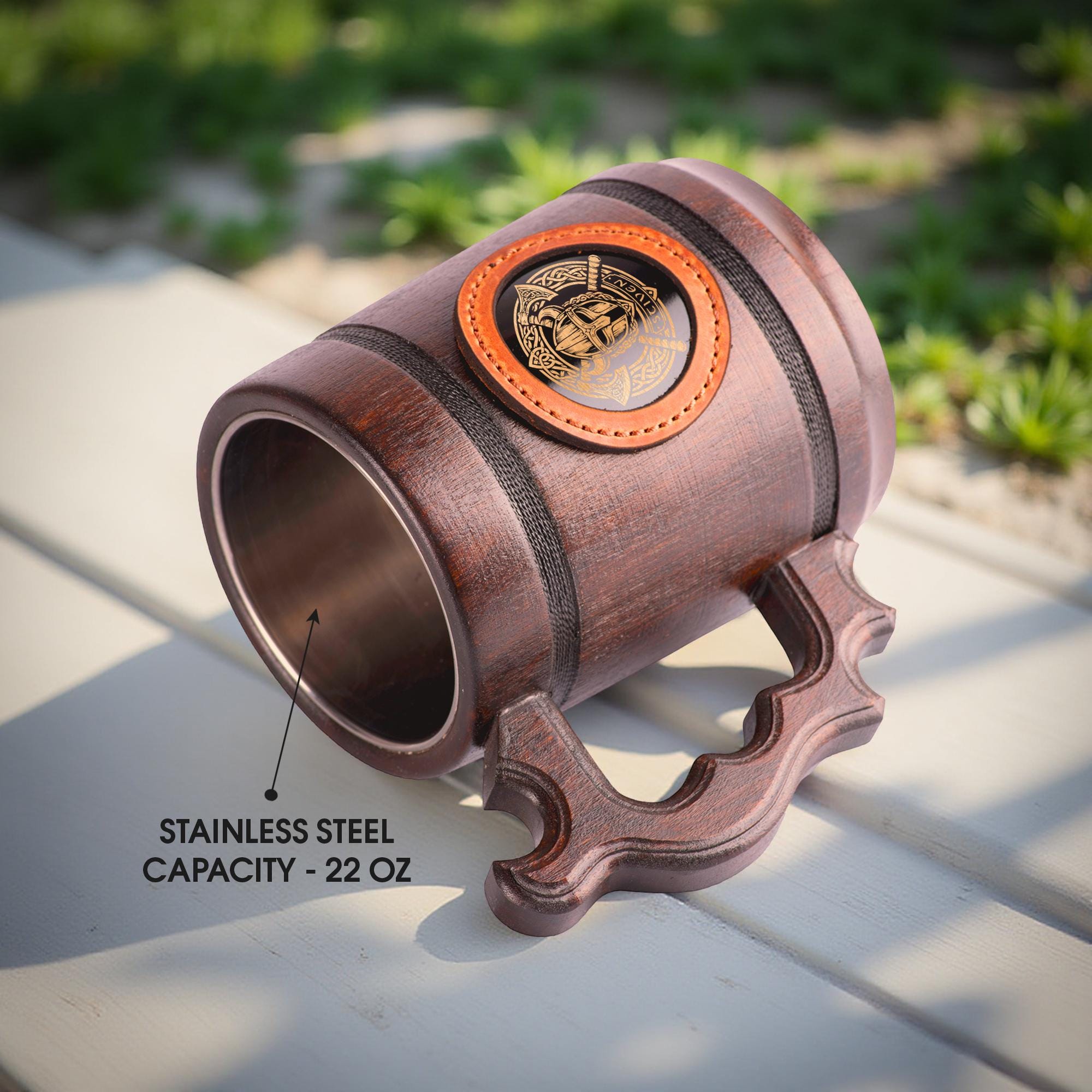 Personalized Viking Armor Beer Mug, Handmade Wooden Tankard 22oz, Norse Gift for Him