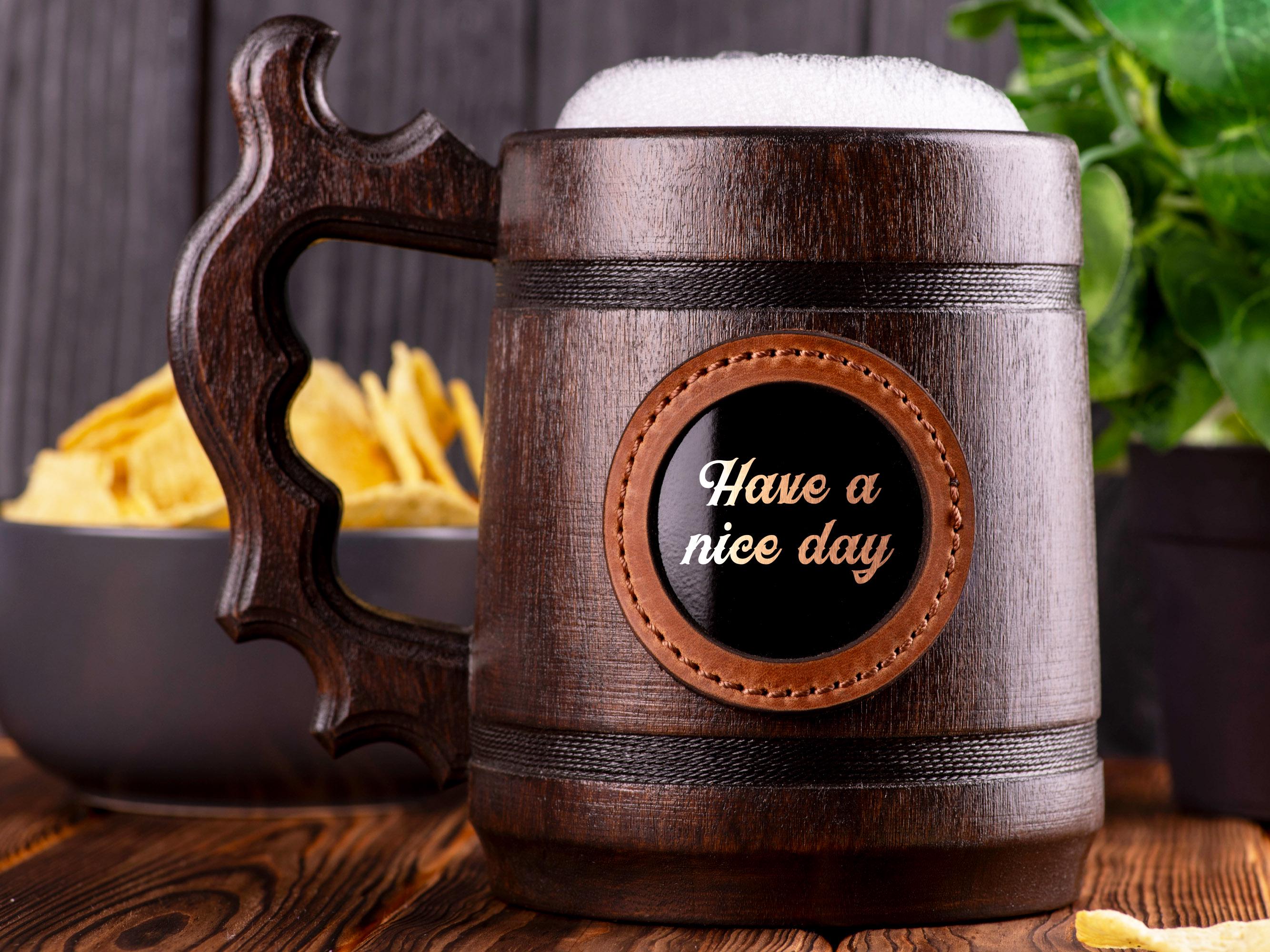 - We can personalize your Wooden Beer Mug with an individual message, initials or corporate logo.