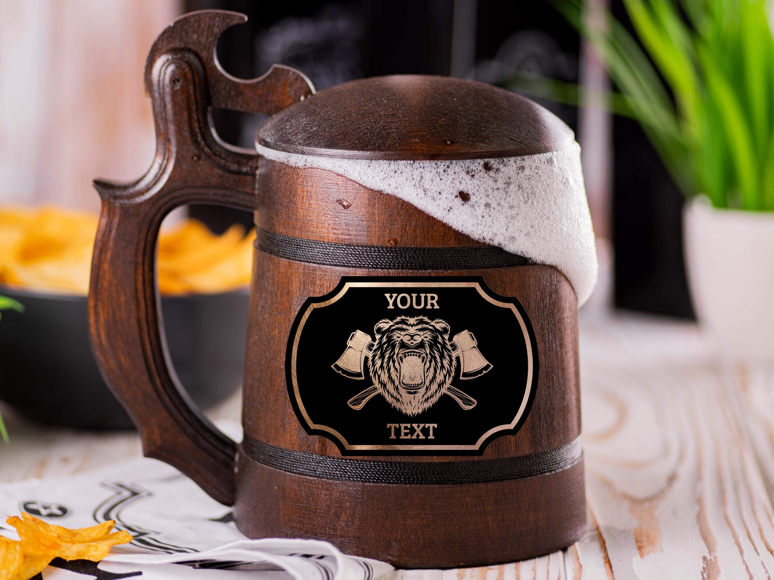 - We can personalize your wooden beer stein with a custom message, initials, or company logo.